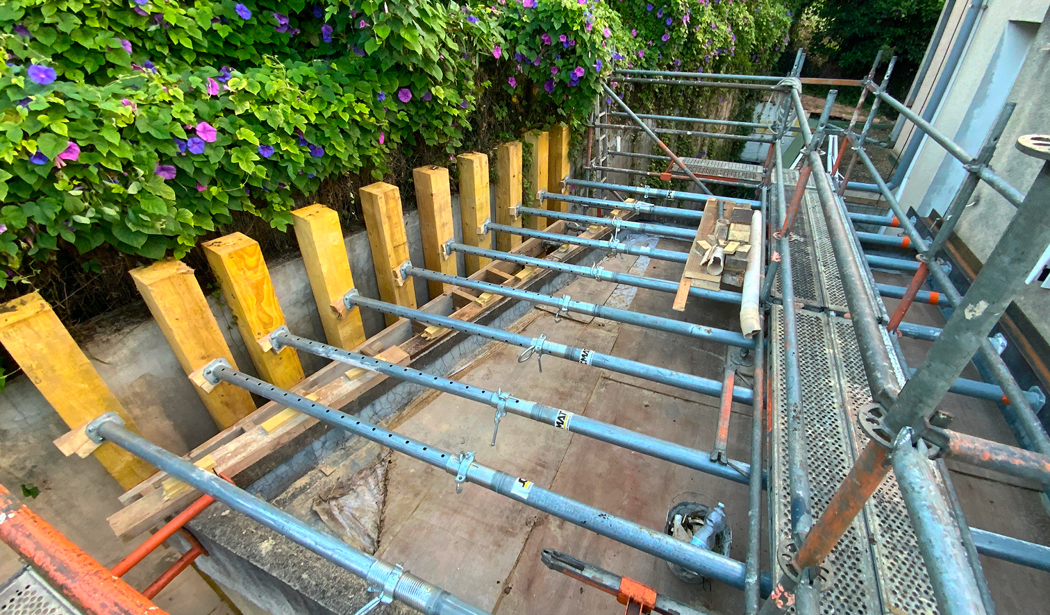 La première étape a consisté en une sécurisation d’urgence par étaiement provisoire, suivie par des études sols approfondies et une expertise béton pour définir un mode opératoire adapté.