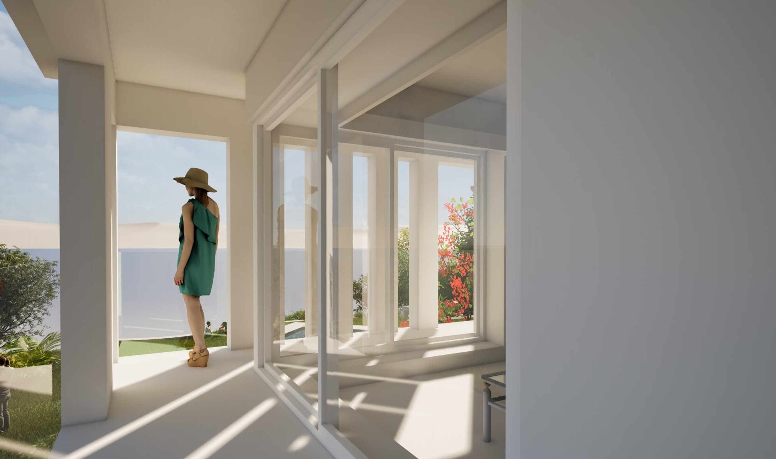 Les volumes sont redessinés avec subtilité, apportant du relief, tandis que les ouverturessur chaque façade prolongent le dialogue avec le paysage.